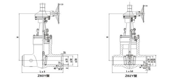 集團(tuán)生產(chǎn)的Z61Y-250、Z61Y-320 型高壓電站閘閥:手動(dòng)、對(duì)接焊連接形式、明桿楔式剛性單閘板,閥座密封面材料為硬質(zhì)合金,公稱壓力 PN250~PN320,閥體材料為碳素鋼的高溫高壓電站閘閥。